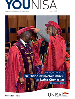 In the latest issue of YOUNISA, the magazine for Unisa students, alumni, and friends, technology is in the spotlight and we invite you to read about how it is shaping our teaching and learning, and how our students, alumni and researchers engage with it in many diverse ways.The issue also features a collectible loose sleeve commemorating the inauguration of Unisa Chancellor Thabo Mbeki. The event was much more than a ceremonial occasion—it marked the joining of hands to realise the vision of an African Renaissance.And as you browse through the many interesting articles, keep an eye open for a special offer from one of our advertisers.