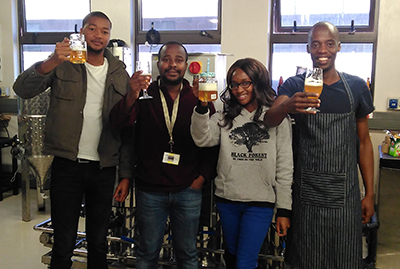 Unisa’s ace brewing team: Veli Mthethwa, Saneliswa Magagula, Maphala Llane, and Mpendulo Ncongwane