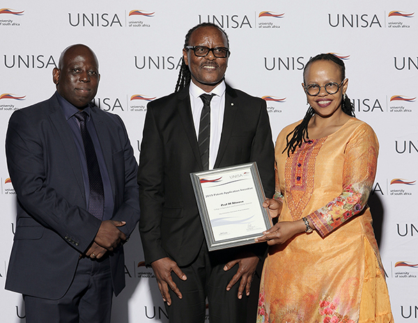 Prof Monde Ntwasa from the College of Agriculture and Environmental Sciences (CAES) received a 2019 Innovation Award at the Unisa 2020 Research & Innovation Awards for his 2019 Patent Application Incentive: Anti-cancer drug combination.