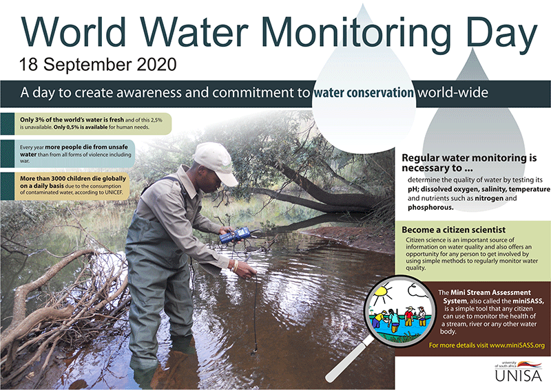 World Water Monitoring Day - 18 September - was created by America’s Clean Water Foundation in 2003 to challenge people all over the world to raise awareness of water pollution issues and get people to test their local bodies of water.