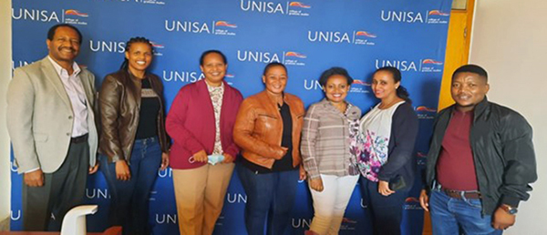 From left: Meseret Tefera, Deputy Director of Unisa's Ethiopia Regional Learning Centre; Zodidi Pinde, Ethics Practitioner; Dr Tsige Aberra, Director of Unisa’s Ethiopia Regional Learning Centre; Zibuyile Jafta, Deputy Director, Ethics Management Division; Gelilawit Mekonnen, Student Advisor; Dr Simret Mulugeta, ICT and Technology Enhanced Learning Coordinator; and Andries Kgaladi of the Ethics Management Division.