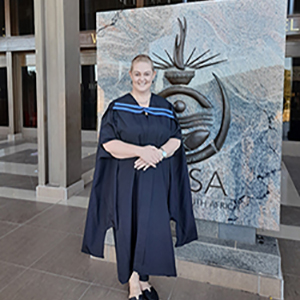 Riaana Robberts recently completed a Diploma in National Safety Management at Unisa. The journey to this achievement was, however, filled with hurdles and difficult decisions owing to a health scare. Explaining the ordeal, she says: "I found out last year in October that I have stage-three aggressive breast cancer." The untimely news found her in her final year of study and during exams. Unfortunately, of the three modules she was writing, she failed two. Though extremely sick at the time, not all hope was lost as an opportunity to rewrite the exams in January 2022 was available.