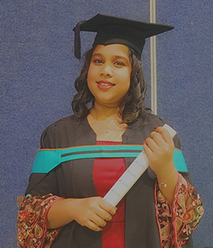 Born in Pietermaritzburg, Sheik was raised by a single mother, her uncles and grandparents. She comes from a financially challenged background and had to find employment in order to fund her studies and take care of her family. "Therefore," she explains, "my background made it difficult for me to study full-time, but Unisa’s unique Open Distance and eLearning (ODeL) model worked best for me."