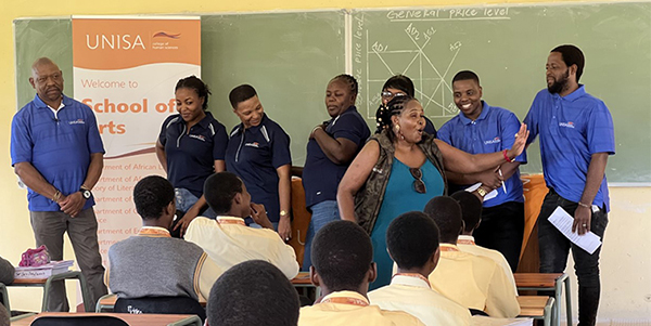 Over a period of one week, members of the department’s IsiZulu section conducted visits to schools in the uMkhanyakude District in KZN in the spirit of the university’s 150th anniversary theme, "Reclaiming Africa’s intellectual futures". They visited the Star of the Sea High School, Sizaminqubeko High School, Shayina High School, Thongwana High School, Namaneni High School, Sinethezekile High School, Ezibukweni High School, Vezobala High School and Silethukukhanya High School. The purpose of the visit was to educate Grades 9 and 12 learners about the different career options available to those who study isiZulu at Unisa. Teachers also joined in the sessions, and enquired about furthering their postgraduate studies through Unisa.