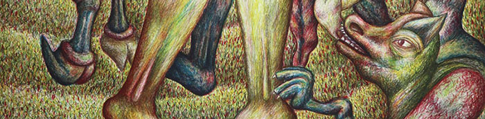 Claudette Schreuders creates carved and painted wooden figures that reflect the ambiguities of the search for an “African” identity in the post-apartheid 21st century. She says that the domain of woodcarving is a contested one for a white Afrikaans woman, yet the subtractive process of carving offers a certain lack of control that she enjoys.