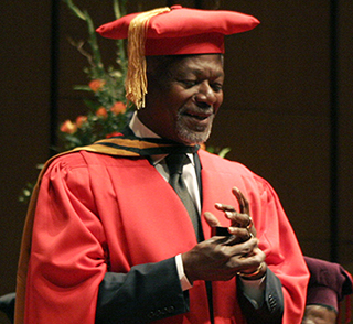 Unisa joins Africa and the world in mourning the passing of Kofi Atta Annan, who died on 18 August 2018. The Secretary General Emeritus of the United Nations, Nobel Peace Laureate, diplomat, heir apparent to the Asante chieftaincy, and member of the Society of Elders was honoured with a Doctorate in Literature and Philosophy by the university on 17 July 2008.