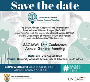 Unisa is honoured to host the 2022 South African Chapter of the International Association of Women Judges (SAC-IAW) Conference and the Annual General Meeting from 5 to 7 August. SAC-IAW is an association of female and male judicial officers in South Africa (SA) inaugurated by Unisa’s Chancellor and Former President Thabo Mbeki on 8 August 2004.