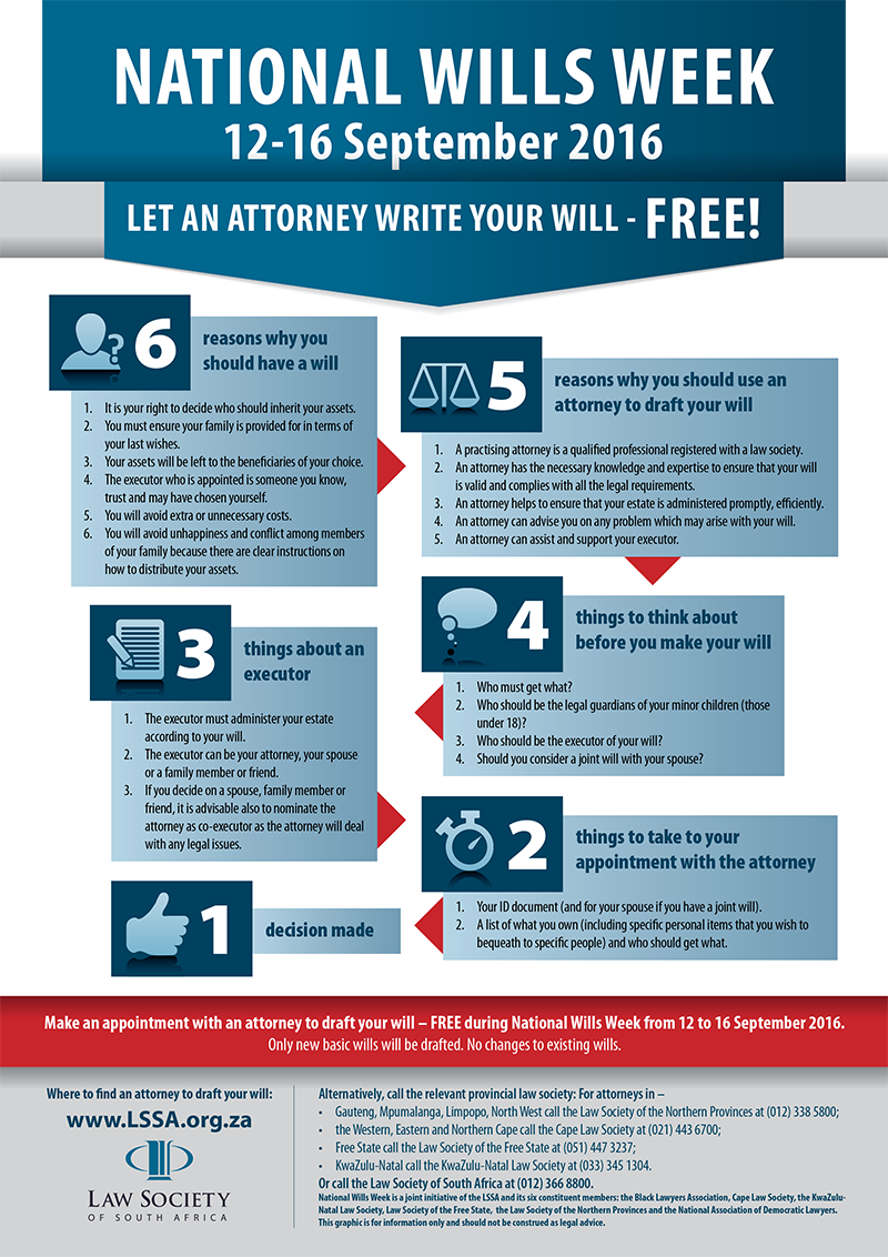 It is National Wills Week from September 12 to 16 and all South Africans can get a free, simple will drafted by a qualified lawyer.