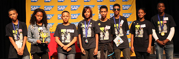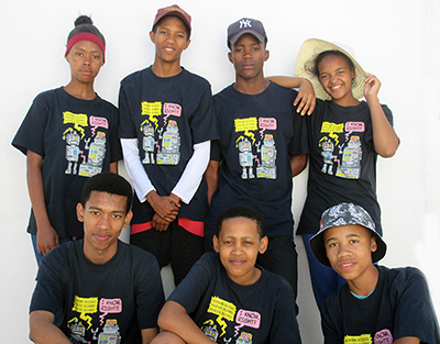 Li-Yono van Wyk, Lindsey Olivier, Dyllann Goeieman, Thurlo Maritz, Mbuso Mpanza, Saadique Hendriks, Shannon Vermeulen (team mentor) and Me-Chandré de Bruyn at the national finals
