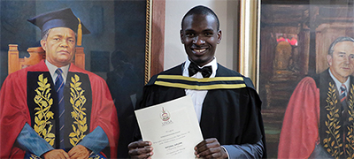 According to Prof Pretorius, Malesu’s academic success derives from his relentless pursuit of ideas. "He worked as a full-time gardener six days a week, and yet he still found time to study through lecture notes over earphones," he says. "This creative approach to problem-solving is characteristic of his personality, as is his passion for his studies, his future and his determination to achieve success in life, against tremendous odds."