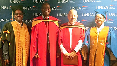 Prof Bhekie Mamba (Executive Dean, College of Science, Engineering and Technology, Unisa), Prof Ernest Mnkandla, Prof Barry Dwolatzky (School of Electrical and Information Engineering, Wits) and Prof Thenjiwe Meyiwa (Vice-Principal: Research, Postgraduate Studies, Innovation and Commercialisation, Unisa)