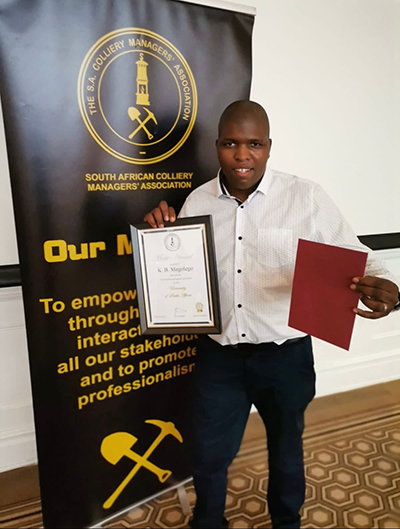 Kgariri Benny Magolego from the Department of Mining Engineering in the College of Science, Engineering and Technology was recently recognised as a top achieving student in Coal Mining Engineering at the South African Colliery Managers’ Association (SACMA) Annual General Meeting Awards held on 25 February 2022 at the Country Club, Johannesburg. His hard work and perseverance have earned him a merit award as a Top Coal Mining Engineering student for 2021 from the University of South Africa (Unisa). The merit certificate was accompanied by prize money to the value of R2 500.