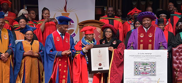 Unisa conferred the degree of Doctor of Philosophy (Honoris Causa) to internationally acclaimed Ndebele artist Dr Esther Mahlangu in recognition of her profound mathematical principles embedded in her breathtaking and mesmerising artworks. As an African university, Unisa is committed to recognising and affirming indigenous knowledge systems. Read more