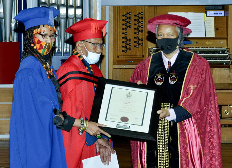 In his congratulatory address, the VC said “we are privileged to be in the midst of these honorary doctoral recipients”. He also congratulated Pheko on his 90th birthday and acknowledged how he dedicated his life to the liberation struggle.
