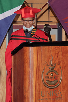 After Unisa’s Principal and Vice-Chancellor, Professor Mandla Makhanya, conferred the degree, the house sang a birthday song for Mkhulu, who was supported by his family and friends. “This degree is not only for myself, but for the thousands of people who have worked with me, lifted me, shared their stories of injustice with me, and trusted me in various positions of leadership to be a voice that speaks for millions living on the margins of the African society,” said Pheko.