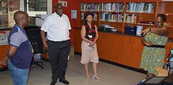 Midlands Regional Director, Mathews Kokong, recently visited the Rustenburg library as part of staff engagement. Kokong said the library is a vital resource centre for students to access information during their study journey at the university. Since Unisa is an ODeL institution, Kokong urged library staff to think of ways to make library resources available online to enhance accessibility and flexibility for students. Kokong said: "The Fourth Industrial Revolution (4IR) necessitates that we think of a library without walls−where students can access unlimited library material wherever they are."