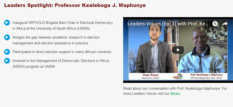 Prof Kealeboga Maphunye (LinkedIn) is the inaugural WIPHOLD-Brigalia Bam Chair in Electoral Democracy in Africa at the University of South Africa (UNISA). The Leaders of Africa Project represented by Peter Penar recently spoke to him.
