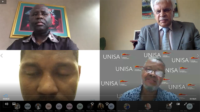 The High Commissioner for Mauritius, HE Ambassador Vijaye Lutchmun, remarked briefly about the work done to control and manage the oil spill in his country and their remarkable control of Covid-19 infections, indicating that there are no new cases of the coronavirus unless those have now come from visitors touring his country. He expressed an interest in advancing collaboration between Unisa and Mauritian universities, indicating that they have various English and French institutions of higher education.