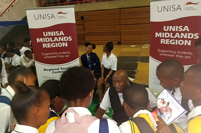 The Unisa Midlands Region recently participated in a career exhibition in the Lejweleputswa (Welkom) and Bojanala (Rustenburg) districts. The exhibitions are held annually to expose Grade 12 learners to how individual institutions of higher learning operate. They also expose learners to various careers in the job market and study programmes offered in institutions. Senior Education Specialist Kholeka Maposa from the Department of Education (DoE), Lejweleputswa district, appreciated the dedication and passion of representatives from various institutions and organisations for sharing valuable information with learners. Maposa further encouraged learners to utilise the information shared with them and visit the university websites to acquaint themselves with how individual institutions operate. Career exhibitions are essential for learners, especially those who are less privileged and cannot access information from institutions of higher learning.
