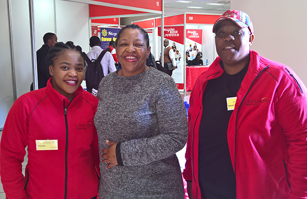 Mandu Makhanya (DCCD) (centre) with two of the Team RED Careers Fair ushers