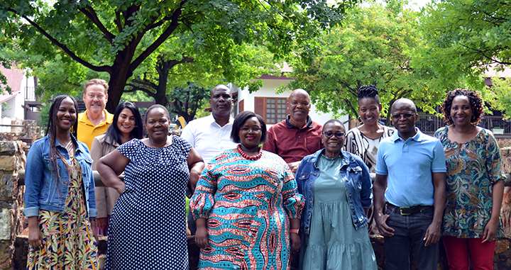 Front, from left: Modiehi (Mo) Rammutloa (Coordinator, Data Standards and Quality Reporting: Library and Information Services), Legobole (Mante) Rantlha (Personal Librarian: Unisa Library), Dr Nkateko Eudora Lowane (Buyer, Demand and Acquisition: Supply Chain Management), Refilwe Phala (Research Commons Librarian: Unisa Library), Marshall Hwehwe (Internal Auditor: Internal Audit Department) and Mokgadi Senyolo (Branch Librarian: Library and Information Services) Back, from left: Philip van der Merwe (Editor: Department of Institutional Advancement), Amisha Benode (Programmes and Projects Officer: PRC), Dr Sipho Makgopa (Curriculum and Development Specialist: Directorate: Curriculum Development and Transformation), Prof. Lesiba Teffo (Expert Consultant: Research, Innovation and Commercialisation) and Prof. Puleng Segalo (Incumbent of the Chief Albert Luthuli Research Chair)
