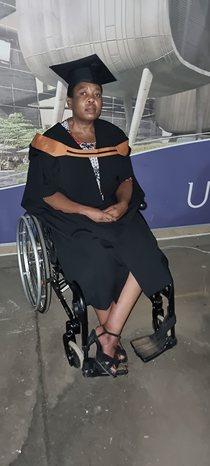 While the accident changed Mabitsela’s life in an unprecedented way, she rose from the sense of defeat to continue living in the best way she can. She currently works for the Road Accident Fund and has also done well in her academic endeavours. Mabitsela completed her Bachelor of Arts in Public Administration and Communication Facilitation from Unisa in 2012. She later chose to study for a Bachelor of Forensic Science and Technology because she wants to pursue a career in the forensic investigation sector. Explaining why Unisa has always been the university of choice for her, she says: “I choose to study at Unisa because I can juggle my work and my studies without pressure. Studying through Unisa has many advantages. For me, chief among these is that I get to do my work on my own time.”