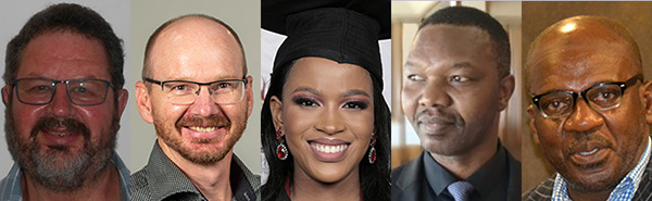 From left: Herman Visser, Senior Specialist: Institutional Statistics and Analysis, Department of Institutional Intelligence; Dr WP Wahl, Director: Student Life, University of the Free State; Tokollo Mmamaro, National Student Representative Council: Sports and Cultural Officer, Unisa; Dr Themba Mzangwa, Unisa’s Regional Manager: Eastern Cape; and Console Tleane, Director: Systems and Policies Change, Department of Leadership and Transformation, Unisa