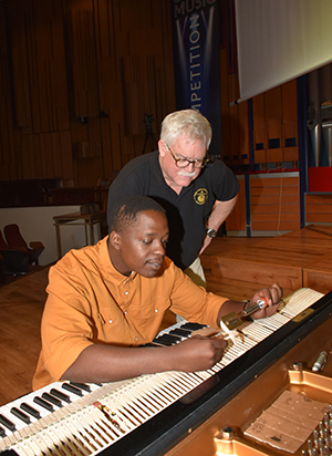 Tshepiso Ledwaba and the Oberlin Conservatory’s John Cavanaugh working their magic on one of Unisa’s Steinway pianos