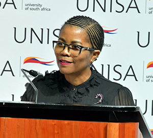 Prof Puleng LenkaBula, Principal and Vice-Chancellor of Unisa, said that the idea of the Founders Lecture has been for universities to understand and grapple with the grand challenges and opportunities that a university can partner with society to find solutions and humanise worlds. She added that especially worlds that have been defined by fragmentations, oppressions, wars, violence, negations of the humanity of each other and the negligence of living in peace and flourishing with the cosmic environment.