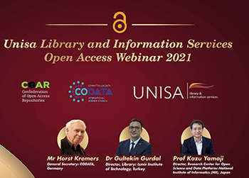 The Unisa Library and Information Services celebrated International Open Access Week (25 - 31 October 2021) through a webinar on 26 October, focusing on the opportunities and challenges facing the library and information science sector relating to open educational resources, open science and other issues related to open access.