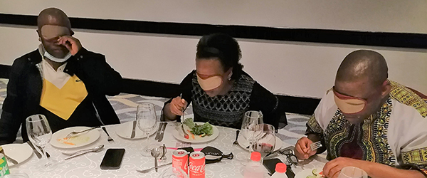 During the evening, a white cane "dinner in the dark" was hosted. This event was designed to allow guests to experience what it would be like, to do something as simple as eating one meal without the benefit of sight. The guests could not see their food while eating, as all the lights were switched off, leaving the room in total darkness during dinner. Dr Sipuka commented during his speech that even Dr Myeza eventually gave up trying to use her fork while eating in the dark and ended up using her hands. In his view, the purpose of the evening was to get everybody on the same page. Although the event was filled with self-deprecating laughter, importantly, fundamental awareness was created.