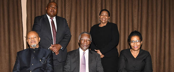Front, from left: Prof Mandla Makhanya (former Principal and Vice-Chancellor, Unisa), His Excellency Dr Thabo Mbeki (Chancellor, Unisa) and Prof Puleng LenkaBula (Principal and Vice-Chancellor, Unisa)