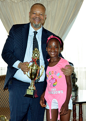 The family was very excited to finally meet Makhanya in the flesh and felt it was a dream come true. Makhanya was very delighted to host his guests and even more excited when Tshireletso showed him her awards and gave him one of her trophies as a token of appreciation. The VC also took the opportunity to present Tshireletso with her gifts from the university, mainly being school essentials. He encouraged her to keep studying hard in order to be successful and added that veterinarians are in great demand, Mathematics would be one of the key subjects to gain entry to the course. He urged her parents to keep being supportive towards the girl as it would encourage her to keep on improving herself.