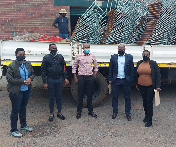 Unisa stores more than 4 350 desks and chairs used by students for examination purposes at Biddulphs International in Pietermaritzburg. However, as the university recently opted to change from venue-based examinations to conducting online examinations, Unisa decided to donate its unused furniture to Umlazi District Schools after receiving a donation request.