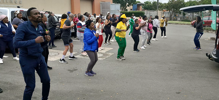 After the presentations there was a one-hour session during which a Virgin Active instructor oversaw sporting activities, exercises and aerobics. The Department of Sports, Arts and Culture oversaw indigenous games and medical schemes Bonitas and Aurora Health Care offered medical screenings.