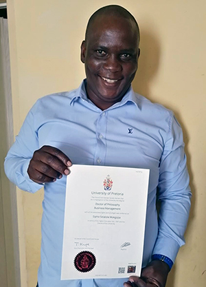 In early 2020, Makgopa successfully completed a PhD in Business Management within a record time of three years. The topic of his PhD thesis is The influence of service innovation practices on business performance. He researched this subject because of its relevance to many businesses and organisations, which strive to remain innovative as a result of competition pressures, globalisation, frequent technological changes, market turbulence and a need to improve business performance.