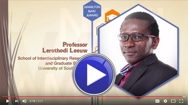 At the 2016 National Research Foundation (NRF) Awards ceremony to recognise and celebrate South African research excellence, Unisa received the Excelleration Award for South African Research Institutions, while Prof Lerothodi Leeuw walked off with the Hamilton Naki Award.