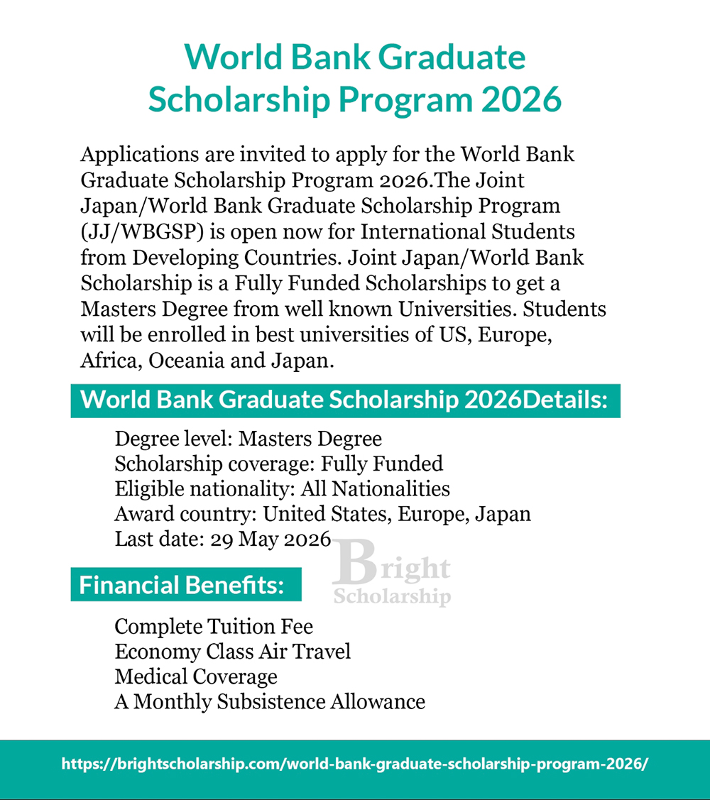 - Call for applications: World Bank Graduate Scholarship Program 2026. Click here for more information.