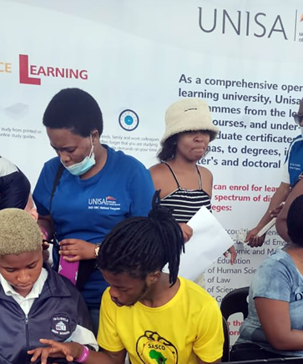 On Saturday, 13 November 2021, the RSRC team set up a station in the Kwa Langa Zone 16 Playpark. The main aim of the initiative was to provide support to members of the community in applying for National Student Financial Aid Scheme (NSFAS) funding. The RSRC availed themselves and provided the necessary resources to assist community members with the successful submission of their NSFAS applications. The initiative created a platform for the sharing of information regarding funding opportunities and Unisa as an online learning institution.