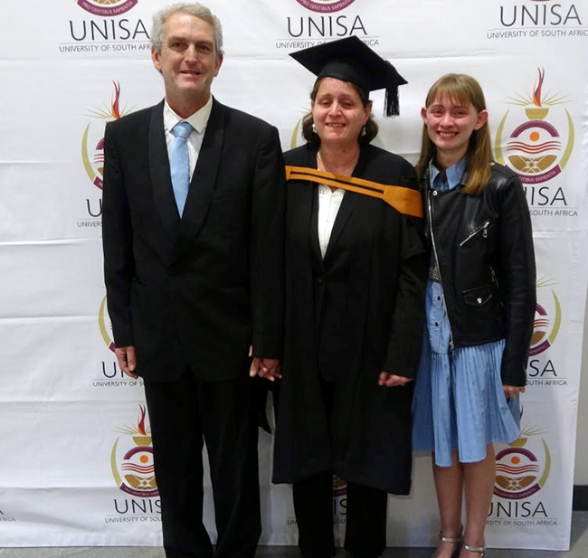 She says: "I encourage fellow students to join Unisa's social media platform groups that are available for various modules. Unisa students are wonderful; we help each other. Also, familiarise yourself with the available technology to make it easier to access books and other study materials."