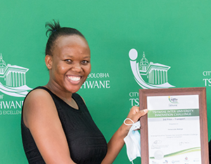Nkamogeleng Matloga won third place in the transportation category of the recent Tshwane InterUniversity Innovation Challenge