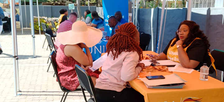 Unisa staff members from the Colleges of Human Sciences, Economic and Management Sciences, and Agriculture and Environmental Sciences engaging with prospective, current and returning students on a number of academic topics