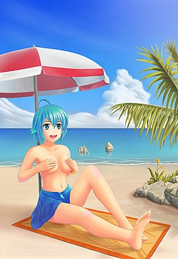 - In what is probably the silliest deletion battle in Commons history, someone actually thought that this image of Wikipe-tan showing less skin than a 60’s beach party movie was “sexist” and would drive away female contributors (which is arguably a lot more sexist than a goofy unsexualized drawing of an anime girl showing a bit of her tummy): commons:deletion requests/File:Jumping Wikipe-tan.svg